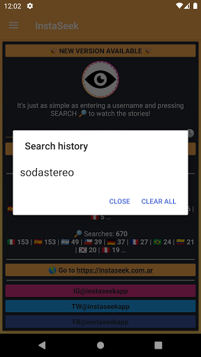 - Search history: so that it is not necessary to retype the users already searched. It can be disabled.