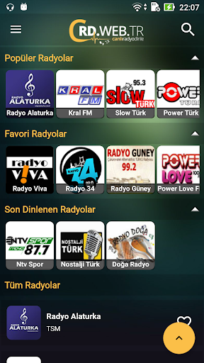 Slow Türk, Power Türk, Radyo Fenomen, Kral FM, Baba Radyo, Alem FM, Show Radyo, Radyo Seymen, Radyo Banko, Radyo Alaturka, Best FM, Kafa Radyo, Türkü Radyo, joytürk Akustik, Radyo Voyage, Trt Türkü, Trt Radyo 1, Power Love FM, Number One FM, Number One Türk, Romantik Radyo, Radyo Viva, Radyo 34, Pal Station 106, Karadeniz FM, Radyo Dejavu, Ntv Radyo, Ntv Spor Radyo, Lokum FM, Açık Radyo ve diğerleri...