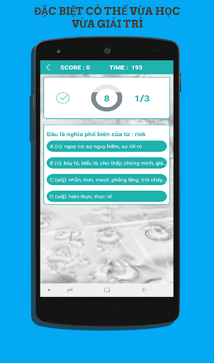 ✓ Đặc biệt là bạn có thể vùa học vừa giải trí qua ứng dụng trò chơi trắc nghiệm. Ứng dụng sẽ lưu số điểm của 3 lần bạn chơi cao nhất. Nó sẽ giúp bạn nhớ thật lâu những từ đã học.