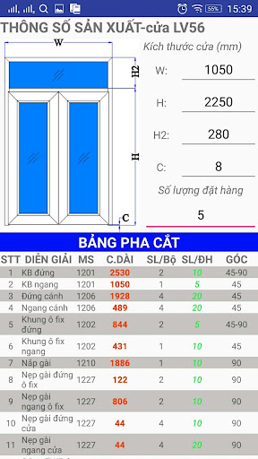 Ứng dụng về cửa nhôm của Long Vân. Xem bản vẽ profile nhôm. Chi tiết bảng pha cắt.