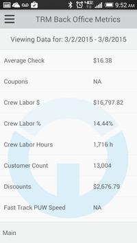 TRM Mobile users can look up near real-time data on operational metrics and review digital signage pricing and content.