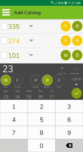• Captures calf and dam information including date of calving, birth ID, calf sex, fate, dam VID and calving notes
