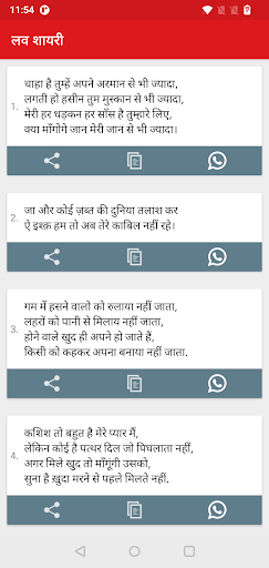 Latest Shayari, Best Romantic Shayari, 2 Line Shayari, New Love Shayari, Top Dard Shayari, Ghazal, SMS, Whatsapp Status and Festival Wishes in hindi.this app is specially for whom searching Dil chu jane Wali shayari for their love and partners.