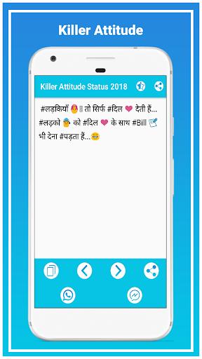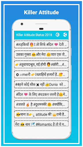 Killer Attitude Status app has user-friendly interface and big database.Now change your status daily with all killer attitude status and shayari app.We have the collection of unique and latest killer attitude statuses in hindi.