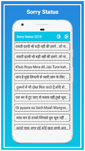 Sorry Status app has user-friendly interface and big database..Now change your status daily with all sorry status and shayari app.We have the collection of unique and latest sorry statuses in hindi.