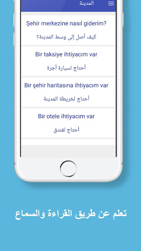 It is also intended for young and old. Each sentence has its translation in Turkish and Arabic