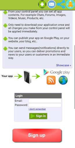 ●With Apk Creator you can create for free, easily and without programming knowledge your native app for Android phones and tablets.