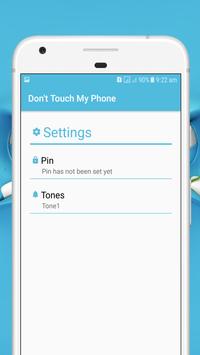 Don't touch my phone will always protect your phone and will protect your privacy from crooks, burglars and thieves. Don't touch my phone is alarm based app which will alert you and will trigger an alarm if someone touches your phone or picks your phone. Don't touch my phone have a variety of tones so you can select a tone of your choice.