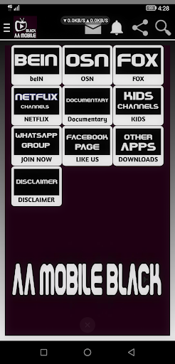 AA MOBILE TV BLACK is a streaming android app which is to complement the streaming services provided by AA MOBILE TV