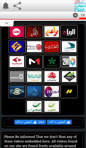 Aplikasi TV Arab mengandungi lebih daripada 700 Arabia Sukan, Berita, Serial, Saluran Agama, Kanak-kanak dan lain-lain tanpa memotong atau SHOUSHA