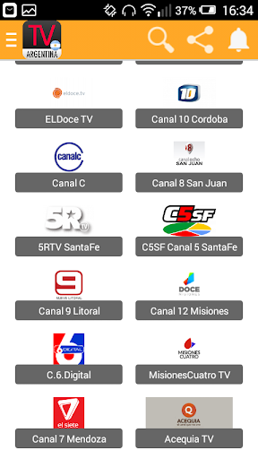 Canales de TV como C5N,TN,Cronica,Telefe,TV Publica,Magazin,La Nacion y muchos mas.como todas las canales de la provincia de Buenos Aires..
