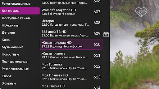 • Os canais de televisão interessantes podem ser adicionados ao "escolhido" para acesso rápido;