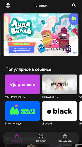 • Seleção temática da série, cinema, desenhos animados e programas de TV na tela principal;