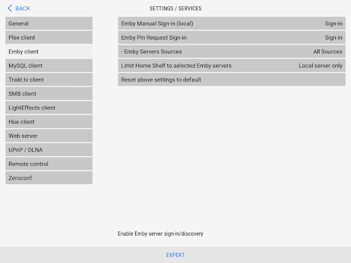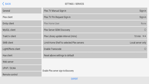 MrMC Lite, features a 10-foot user interface for use with televisions and remote controls. It allows users to play and view most videos, music, and other digital media files from local storage media and media devices/servers such as Plex, Emby, HDHomerun, TVHeadend and more.