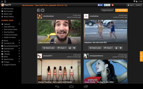 This is not another YouTube funny cat video app or social video app! PypeTV shows you real content that you'll truly enjoy from a wide range of categories such as music videos, comedy, automotive, beauty, cooking, dance, gaming, news and documentaries, just to name a few. The more you use PypeTV, the more it learns about your specific interests (because you're a unique snowflake :) and the better the video recommendations become. Start watching!