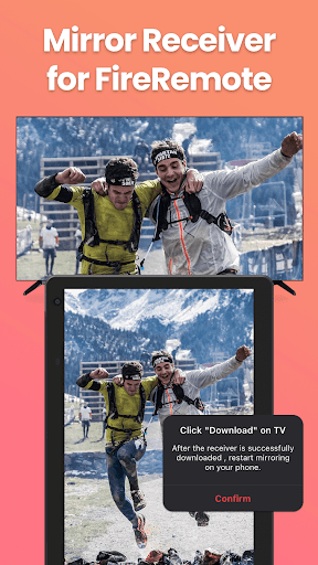 2. Click "Mirror" to enter the mirroring interface and choose to download our receiver app, Screen Mirroring Receiver for Fire TV, on the TV device per the prompt message.