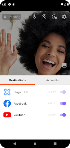 • Stream from your Android device to your storefront and up to 30+ social destinations simultaneously, such as Facebook and YouTube