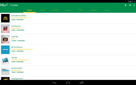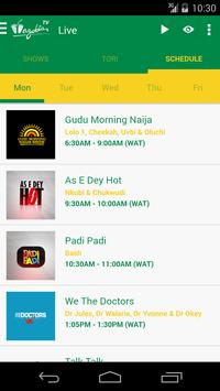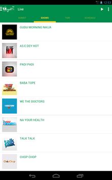 The app dey allow una check time for shows and follow us for Facebook, Instagram, Twitter and YouTube.