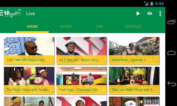 NOTE: Availability of shows fit change at any time. Videos dey work best ontop 3G, 4G, LTE, and Wi-Fi networks. Dem fit collect money for the internet data when you watch videos on top the app.