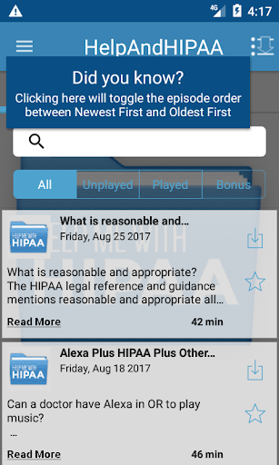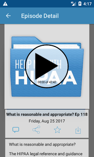 With this app, you are always connected to the latest episodes and the show content. Quickly star episodes and save them to a list so you can easily enjoy them over and over! This app has a Car Mode too! Rotate your phone to display larger playback controls. It is the best and most convenient way to access Help Me With HIPAA, the only free weekly HIPAA training podcast.