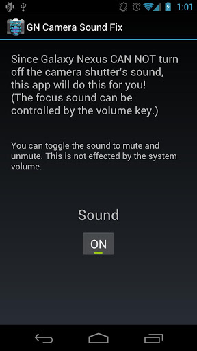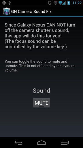 Since Galaxy Nexus CAN NOT turn off the camera shutter's sound, now you can toggle the sound with only ONE CLICK! ** ROOT REQUIRED ** ** ONLY SUPPORT Galaxy Nexus **