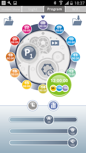 Illumagic imOS STYLE is a light controlling interface which allows you to program and control the LEDs within the STYLE series through WiFi via your mobile devices. You can define the intensities of LEDs within three channels at various time points that you can also define by yourself. You can let the light settings of two adjacent time points to change continuously or discretely according to your need. There are also various lighting modes to be programmed and selected so you can change the light settings according to your favors.