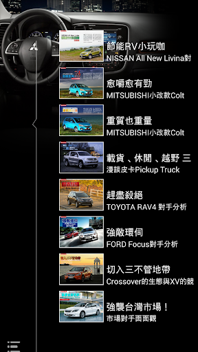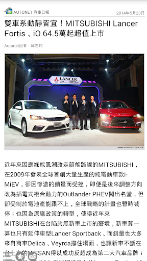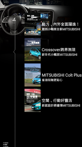 秉持著提供車迷更多元且即時的訊息,推出MITSUBISHI News App,不定時更新第一手最熱門有關MITSUBISHI汽車品牌的相關訊息與新聞,讓喜愛的MITSUBISHI品牌的車迷朋友能夠掌握任何的最新動向,不只方便瀏覽,更可建立個人書籤,並透過Mail即時分享給同好、好友。結合智慧型手持裝置的便利優勢,結合影音、導航、電子書等豐富功能,提供據點查詢、車款型錄、專題報導等品牌相關資訊,滿足車迷們對於MITSUBISHI品牌所有知性的需求。
