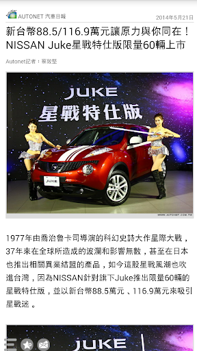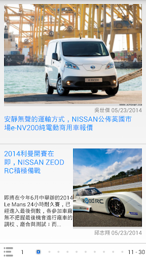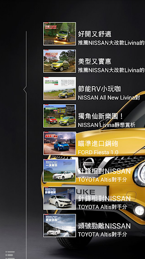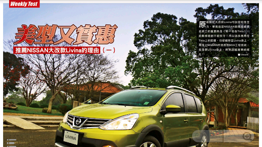 秉持著提供車迷更多元且即時的訊息,推出NISSAN News App,不定時更新第一手最熱門有關NISSAN汽車品牌的相關訊息與新聞,讓喜愛的NISSAN品牌的車迷朋友能夠掌握任何的最新動向,不只方便瀏覽,更可建立個人書籤,並透過Mail即時分享給同好、好友。結合智慧型手持裝置的便利優勢,結合影音、導航、電子書等豐富功能,提供據點查詢、車款型錄、專題報導等品牌相關資訊,滿足車迷們對於NISSAN品牌所有知性的需求。