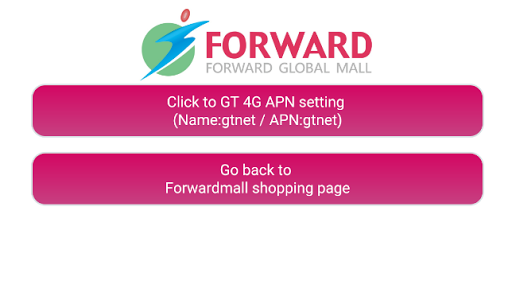 The APP used for "Forward Mall" GT unlimited internet Sim card auto setting, helps customer setup APN easier, and connect to the shopping page.