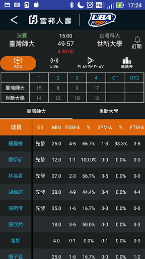 完整的UBA的攻守資料,囊括一級比賽事的攻守數據、即時的Live轉播和未來賽事的預告。