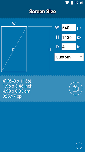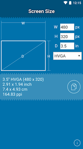 Enter screen size in pixel and diagonal in inch, and then you will get screen size in inch/cm, resolution in ppi, and common aspect ratios such as 16:9 (full version only).