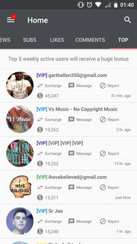 - Any exchange that created by an VIP user will be pinned on top then many users will help you boost your video views/video likes/video comments/channel subscriptions faster. The priority to pin an exchange on top depends on the total coins you bought.