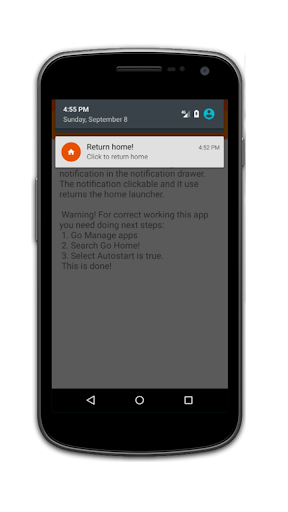 This is simple app create the service. This service showing the notification in the notification drawer. The notification clickable and it use returns the home launcher.