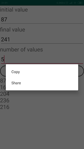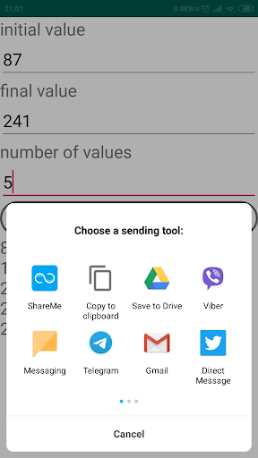 The application allows you to generate numbers, dates and yes / no. You can set the number of randomly generated values. The result can be copied to the clipboard, send / share via messenger or send via SMS.