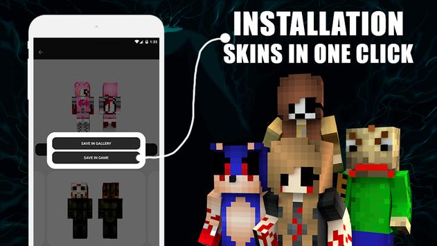 We tried to create a minimalist application with maximum utility. Horror Skins for MCPE (Pocket Edition) can be installed on all versions of the game. If some skin will not work properly, please let us know.