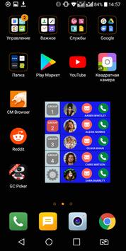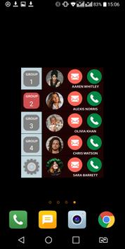 Comfortable and functional widget that is always on your screen. One has a group editor, end you can add any contacts and have quick access to them for calling and sending SMS.