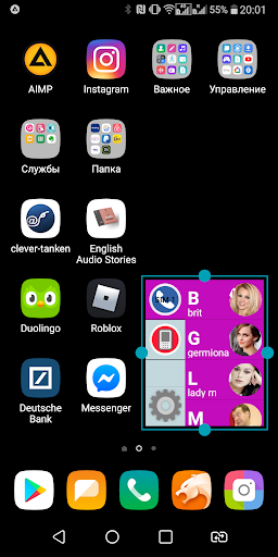 Using our application you can create the widget on the main screen with different groups not only for quick calls and SMS but also for opening contacts in popular messengers such as WhatsApp, Viber or Telegram (only in case these apps installed on your phone).