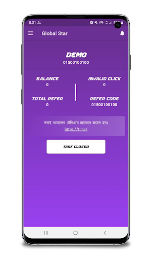 Hi all Welcome to our global Star bd! You click sign up button and create a new account using by your phone number. Then you back this page and log in your account. You can see the main interface in this app. Then you click the start task and next button press. You can see quiz and earn reward. We hope you enjoy our app. You can pass your extra time by using our app. Thank you so much using our app.