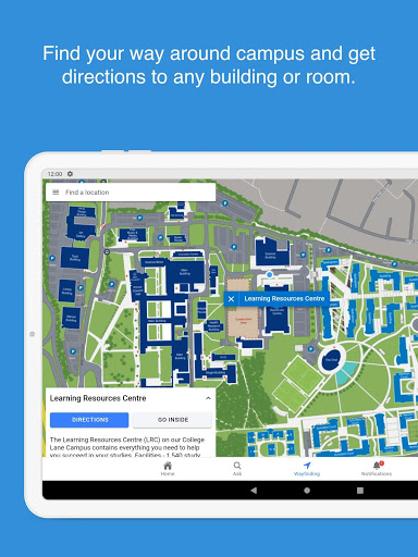 - Find your way around campus and get directions to any building or room.