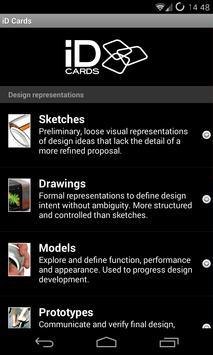 The iD Cards app identifies 32 key types of design representation used by industrial designers; when they are used; and for what types of information. They facilitate more effective New Product Development (NPD) through enhanced design methods, communication, team working and inter-disciplinary collaboration.