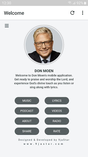 The app also features Don Moen's podcast & videos, and 9jaStar gospel radio station.