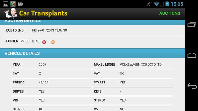 The app currently only displays the vehicle information, and will in the future allow for bidding and add my account features.