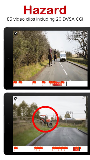 85 interactive video clips, including all 34 DVSA CGI clips covering bad weather and night time driving, with built-in cheat detection just like in the official test.
