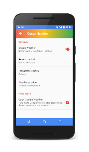 Note: Google Awareness roughly refreshes its data every 3 hours. Use another weather provider if you need more regular weather updates.