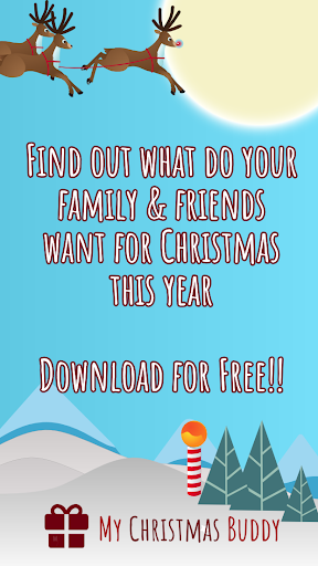 Everyone loves getting Christmas presents. Use MyChristmasBuddy to contact your loved ones and friends to find out their perfect Christmas Gifts.