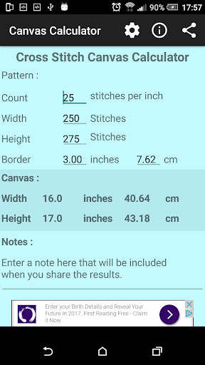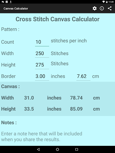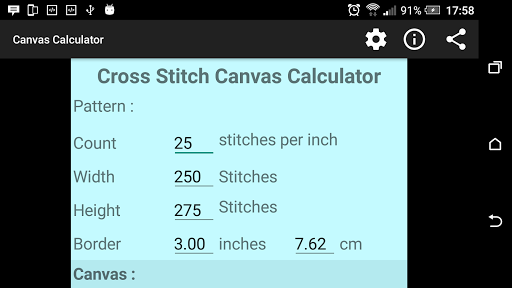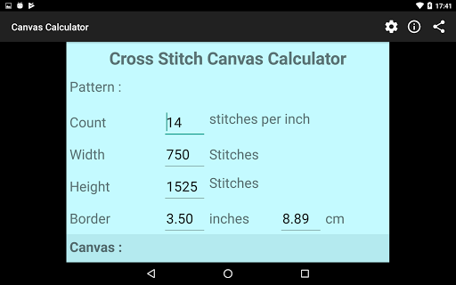 You can then specify an alternative stitch count and have the canvas size recalculated for you.
