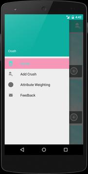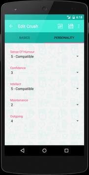 Whether you are talking to potential partners online or offline, you can add them to Crush within 2 minutes. To add a Crush all we require is your opinion on your Crushes attributes. Once added we'll use our algorithms to automatically order your Crushes based on your ratings and dates. Next to your Crushes name we show you how they scored out of 100.