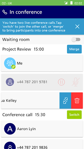 O2 Just Call Me is the easiest way to conference call. It turns your mobile number into a conference bridge. So there's no more pin codes or dial ins. Your callers just dial the chair person's mobile number and they'll get prompted to join the conference call. Easy.
