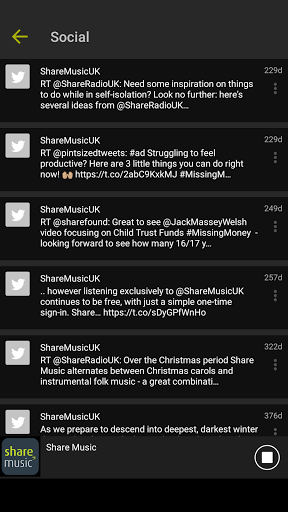 The app shows the tracks you’re listening to and provides the opportunity to purchase them through iTunes where they’re available. It also gives you access to @sharemusicuk Twitter feed for adding your comments, and links to Share Radio’s news bulletins ensure you can keep in touch with everyday life.