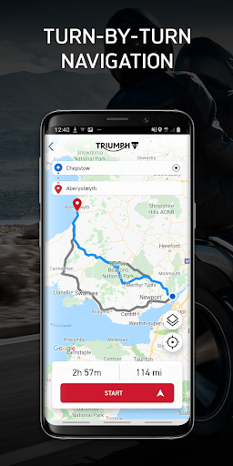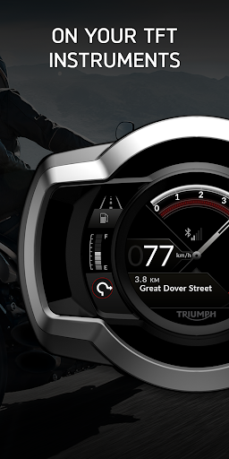 • Start your navigation and follow simple turn-by-turn navigation instructions live on your Triumph’s TFT instrument pack.